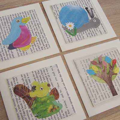 Me ha encantado esta propuesta para realizar unos simpáticos cuadros infantiles. Son muy fáciles de hacer y podéis utilizar cuentos viejos que tengáis para reciclar.