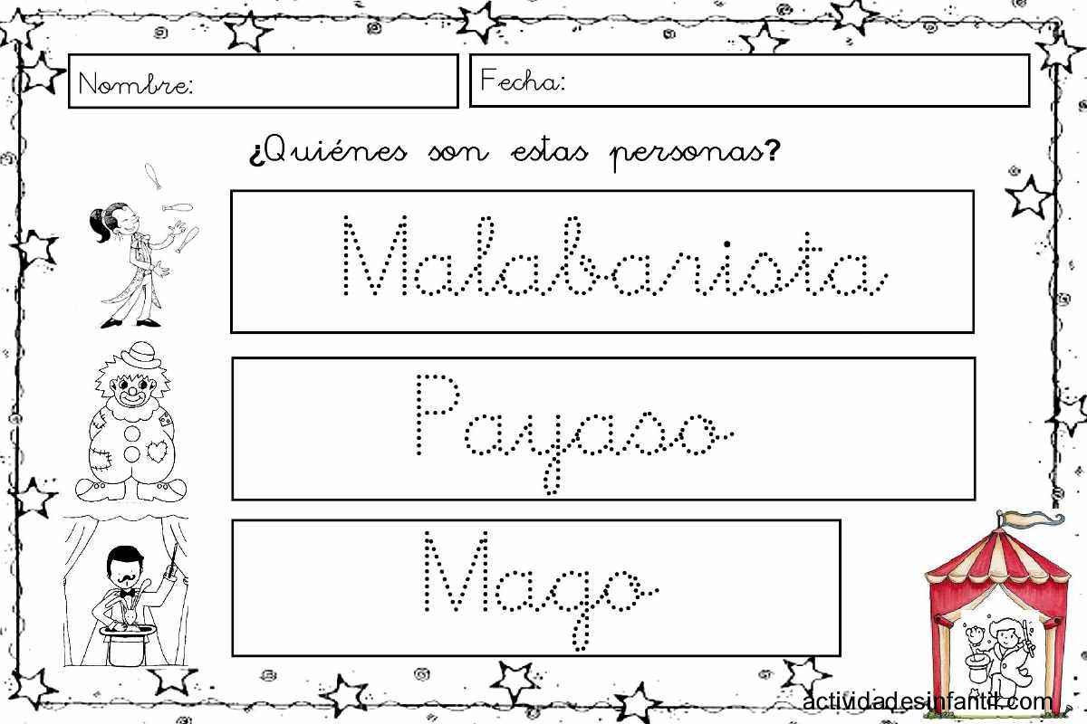 Seguimos trabajando el tema del Circo y de la Magia, y para ello os dejo la tercera entrega de las fichas del dossier del proyecto que preparé. Os recuerdo que todas las fichas de trabajo que os dejo están hechas para que las podáis utilizar con alumnos de varios niveles. Para los más pequeños, con las letras mayúsculas, y para los que ya trabajan la letra minúscula.