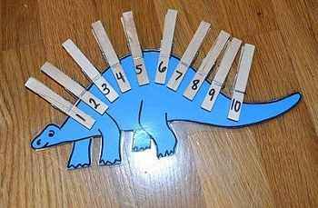Para realizarla solo debéis preparar la silueta de un dinosaurio y unas pinzas numeradas del 1 al 10 (aunque no hace falta que los trabajéis todos).