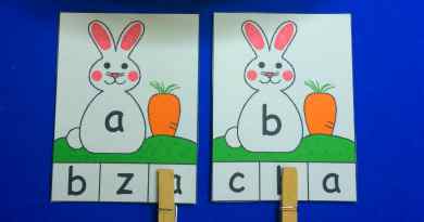 Para prepararlo solo necesitamos unas tarjetitas con el dibujo de un conejito con una letra escrita en su barriguita y en la parte inferior escribimos varias letras (tres en la foto, aunque podemos aumentar o disminuir la cantidad según el grado de dificultad que queramos darle a la actividad).