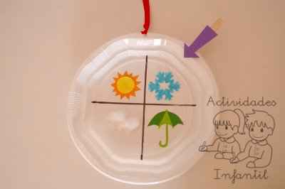 Para prepararlo solo necesitáis un plato de plástico o de cartón y con un rotulador trazaremos unas líneas de manera que quede dividido en varias zonas (tantas como estados del tiempo queráis trabajar).