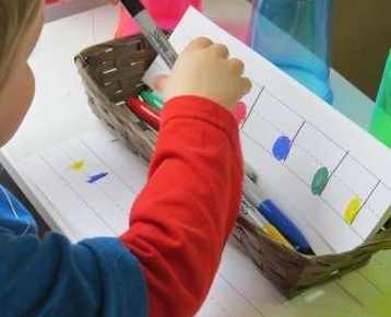 La actividad consiste en que los peques han de «leer» su pequeña partitura, y tocarla en los vasos guiándose por los colores. Recordad que en esta actividad no es importante que las «notas de colores» sean en sí , notas musicales, sino que los peques se familiaricen con las partituras y empiecen a aprender a «leerlas».