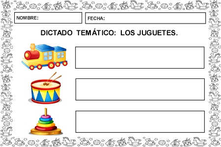 Ficha de dictado para trabajar el vocabulario de los juguetes. Pauta Montessori