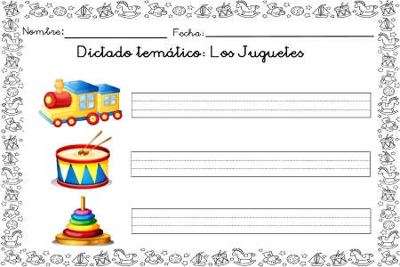 Ficha de dictado para trabajar el vocabulario de los juguetes.