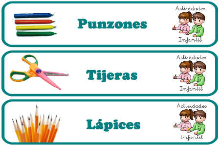 Etiquetas para organizar la clase: Punzones, tijeras y lápices