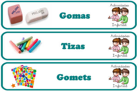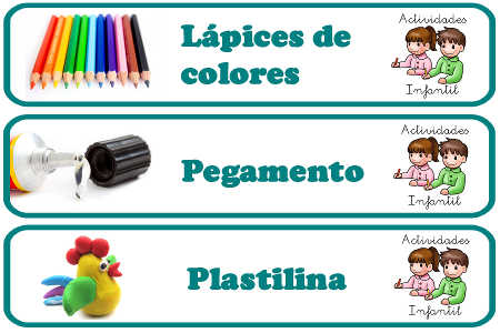 Etiquetas para organizar la clase: Lápices de colores, pegamento y plástilina