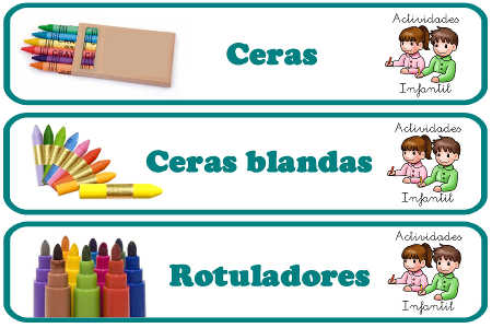 Etiquetas para organizar la clase: Ceras, ceras blandas y rotuladores