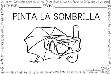 Ficha para trabajar la percepción visual. Pinta la sombrilla.