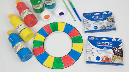 Una vez tengas la estructura, ¡ya puedes decorar tu plato volador con las témperas escolares de Giotto!