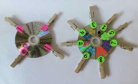 Todos tenemos en casa cds antiguos que ya no utilizamos y con los que podemos preparar estupendas actividades para que los peques aprendan muchas cosas. En este caso os traemos dos para aprender conceptos matemáticos, como es el aprendizaje y/o repaso de los números, de los colores y el trabajo de la observación y de la coordinación óculo-manual.