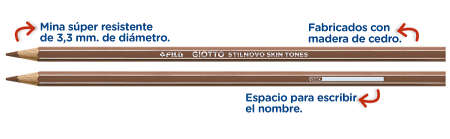 Los lápices de colores Giotto Stilnovo Skin Tones disponen de una mina súper resistente de 3,3mm. de diámetro, están fabricados con madera de cedro y tienen un espacio para escribir el nombre.