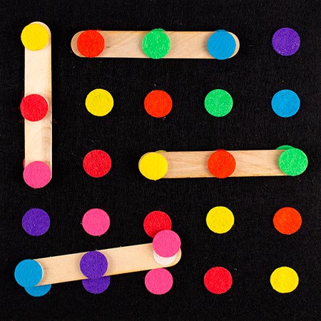 La actividad consiste en presentar a los peques una base con círculos de colores con un orden determinado y, paralelamente, proporcionarles un número determinado (puede aumentar a medida que crecen para aumentar la dificultad de la actividad) de palos de polo en los que habremos puesto (fijos o cambiables) círculos de colores similares a los de la base, de manera que queden diferentes combinaciones de colores.