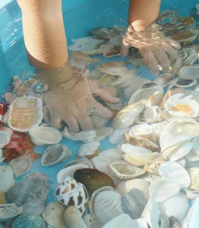 Una vez tengamos los preparativos listos, presentaremos a los peques el recipiente lleno de agua y conchas marinas. Les animaremos a meter sus manitas y a chapotear un poco con el agua para que se diviertan. También les dejaremos que experimenten y manipulen las conchas y la arena. Les podemos pedir que vayan describiendo lo que ven, de esta manera también trabajaremos el desarrollo del lenguaje oral.
