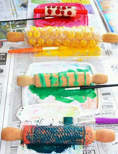 Consiste en enrollar diferentes materiales a un rodillo de madera e impregnarlo de pintura, a continuación, solo deberemos hacerlo rodar sobre una superficie.