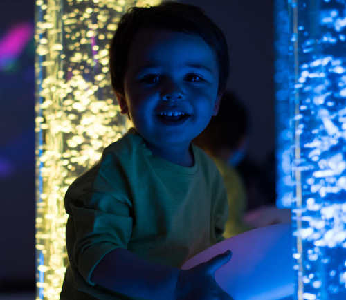 La luz la convierte en algo atrayente, casi hipnótico, que motivará a los peques a jugar con los elementos que en ella haya y concentrarse en su juego.