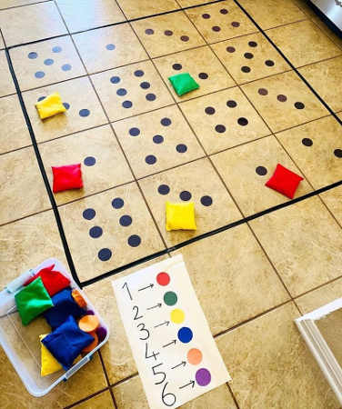 Con esta actividad los peques pasarán un rato muy divertido, aprenderán y/o repasarán los números, los colores y, además, lo harán con movimiento. Es una manera «movida» de aprender matemáticas.