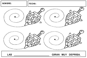 Trabajar el trazo espiral es importante para el desarrollo de la motricidad fina de los peques. Os dejamos unas nuevas fichas para que lo afiancen. Recordad que lo ideal es alternarlas con un trabajo más vivencial de actividades manipulativas que les permita experimentar el trazo con su propio cuerpo (caminar por una espiral, trazar con su dedo espiráles en una base de azúcar, etc) . Esperamos que os gusten.