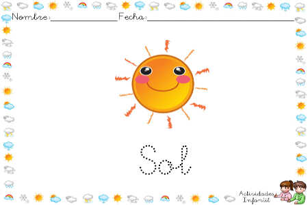 El sol es hoy el protagonista de estas bonitas fichas para trabajar el tiempo atmosférico con los niños. Están secuenciadas en dos niveles de dificultad, para los más peques en mayúsculas y para los que ya saben escribir mejor, o están trabajando con la letra ligada, también la tenéis en minúsculas.