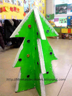Con aroma a café. Así nos dicen los chicos de Libretas de colores nos explica cómo realizar este estupendo árbol navideño que decorará y dará alegría a algún rincón del colegio.Además está realizado con material de reciclaje con lo que enseñamos a los niños a reutilizar cosas y cuidar de nuestro medio ambiente.