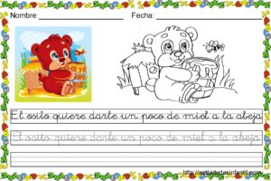 Fichas de lectoescritura para niños. Un simpáticos animales ayudarán a que los peques a aprender a leer y escribir. Además podrán colorear los dibujos.