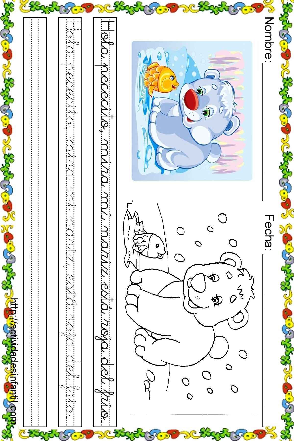 Lectoescritura para niños. Un simpático pez y su amigo el oso ayudarán a que los peques aprendan las letras y su trazo. Además podrán colorear el dibujo.