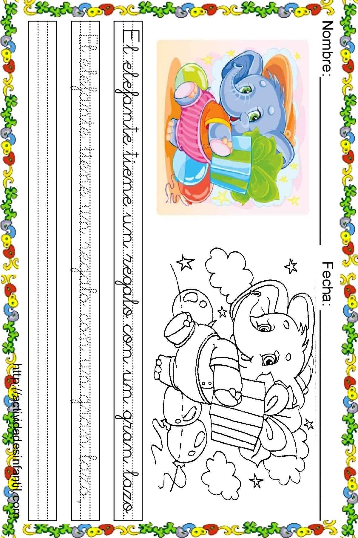 Lectoescritura para niños. Un simpático elefante ayudará a que los peques aprendan las letras y su trazo. Además podrán colorear el dibujo.