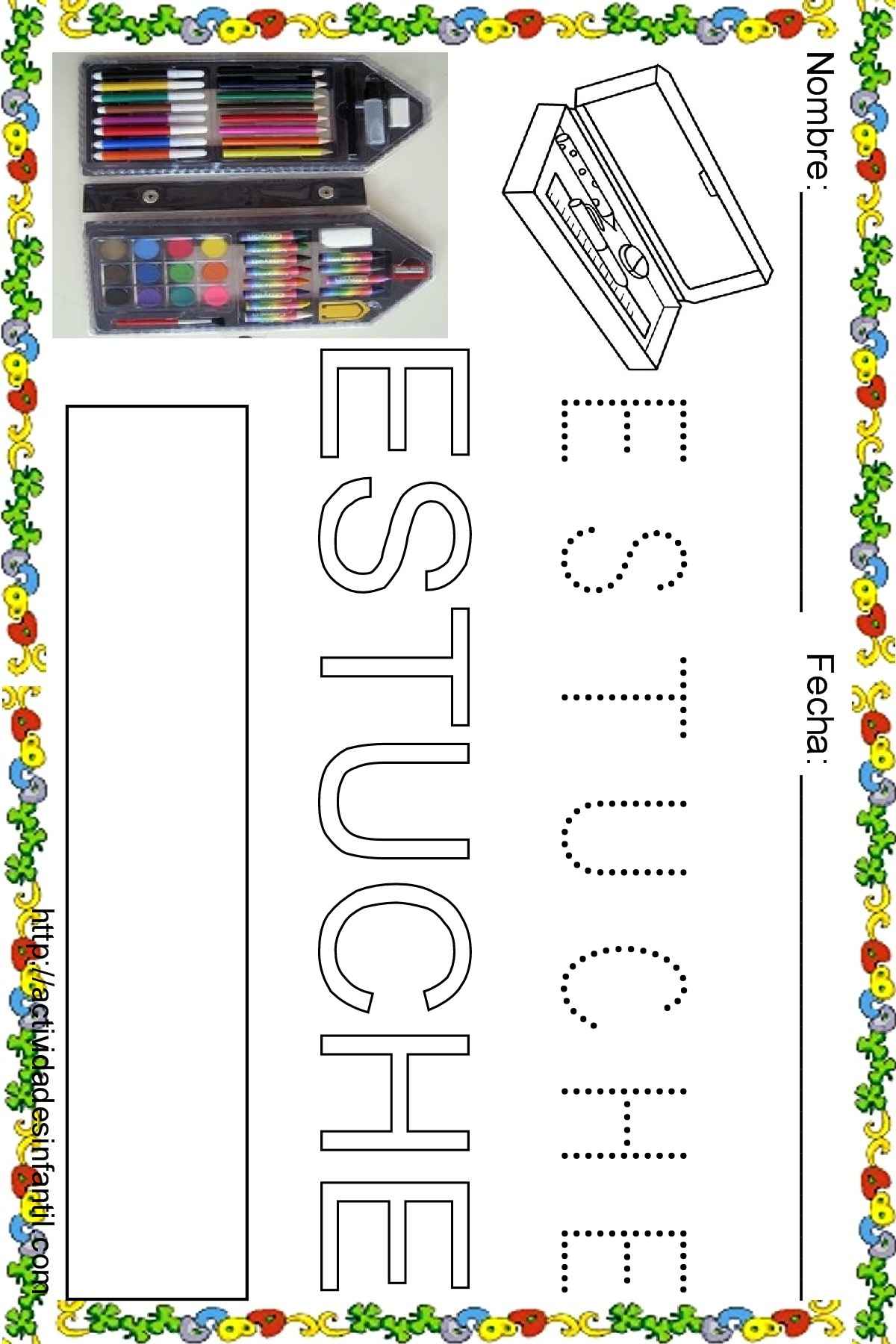 Fichas de lectoescritura para niños: Vocabulario escuela letra E. Unas fichas para que los peques aprendan las letras y su trazo.