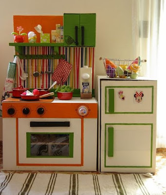 Mirad que cocina de juguete con cartón reciclado os mostramos. Siguiendo con los recursos que podemos realizar reciclando cajas de cartón, os dejo esta estupenda cocina para que los niños jueguen.