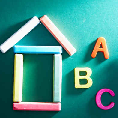 En una hoja de papel hemos de pintar un edificio con cuadritos como pisos. En el piso de arriba se ponen vocales en cada cuadrito, en la primera línea vertical las consonantes. En los otros cuartitos van vivir las silabas, la que son dos letras juntas: consonante de línea Horizontal y vocal de línea vertical.