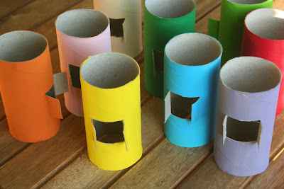 Pintaremos de colores los rollos de papel higiénico y, una vez secos, les dibujaremos un cuadrado en el centro con forma de ventana. La recortaremos con ayuda de los adultos y y doblaremos cada una de sus partes en direcciones opuestas. De esta manera nos quedará una pequeña ventanita en la que, al final, se asomarán los pajaritos que darán el último toque decorativo a nuestras casas para pájaros.