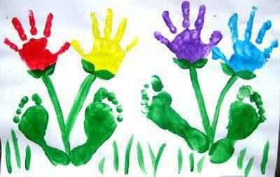 Nuestras manos y pies convertidos en flores de colores. Esta es una divertida actividad que hace disfrutar mucho a los peques. Y es que algo que encanta a los niños es embadurnarse de pintura, experimentar con ella, dejarse llevar por las sensaciones que le provoca… fría, húmeda, resbaladiza, etc. Aprovechando que acaba de entrar la primavera os dejo esta sencilla, pero completa actividad plástica, en la que realizaremos un pequeño jardín con flores de colores realizadas con las estampaciones de sus pequeñas manos y pies. Para darle un último toque, podemos realizar algunas rallas de pintura verde con el pincel.