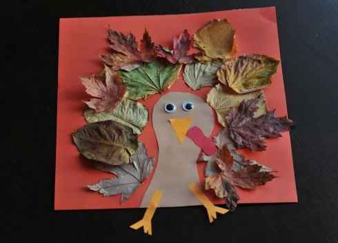 Las hojas que recogemos en el otoño dan para mucho, y para muestra mirad que gracioso pavo se ha hecho con ella. Podemos aprovechar un paseo por el bosque, si lo tenéis cerca, o por un parque si sois de ciudad y recoger hojas de diferentes formas y colores. A las hojas, añadimos unos trozos de cartulina de color marrón, naranja y roja, y dos ojitos móviles para hacer este simpático pavo.