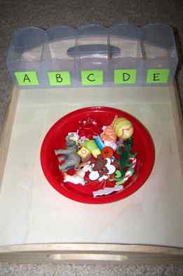 Aprendiendo a leer. ¿Cuál es su letra? es una estupenda actividad para trabajar la discriminación y el reconocimiento de las letras. Para realizarla necesitamos unos pequeños recipientes en los que pegaremos las letras que queramos trabajar, y al lado de los mismos se preparará una pequeña bandeja con material diverso (juguetes, botones, dados, material escolar, etc). La actividad consiste en que los niños deberán clasificar correctamente los objetos, poniéndolos en el recipiente en cuya etiqueta esté la inicial del mismo. (Avión/en la A, Elefante/ en la E, y así sucesivamente).