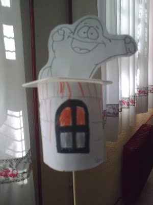 En otro papel, dibujamos un fantasma y recortamos su silueta.