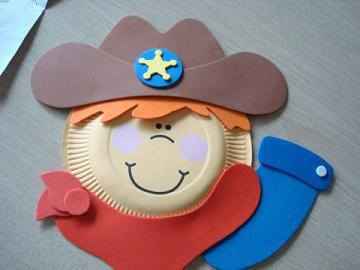 Mirad que sheriff más simpático que se ha preparado utilizando platos reciclados. Con materiales como los platos de cartón y de plástico podemos hacer divertidos personajes que nos pueden servir para escenificar cuentos en el rincón de los cuentos o en el rincón del Teatro. En este caso os presento un personaje muy simpático que pondrá orden en el aula.