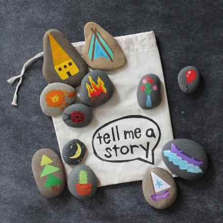 También podemos hacer que un alumno saque una piedra cada vez , por turnos, y siga la historia. Lo más positivo de esta actividad es que cómo el orden de los elementos va cambiando cada vez, las historias nunca serán las mismas. Son múltiples las combinaciones que podemos realizar y por ello, múltiples las historias que de esta bolsa salgan.