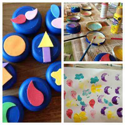 Mirad que sencillo y divertido recurso que tenemos a nuestro alcance con materiales reciclables. Podemos preparar nuestras propias formas para estampar con pintura en murales, tapas, dibujos, etc.