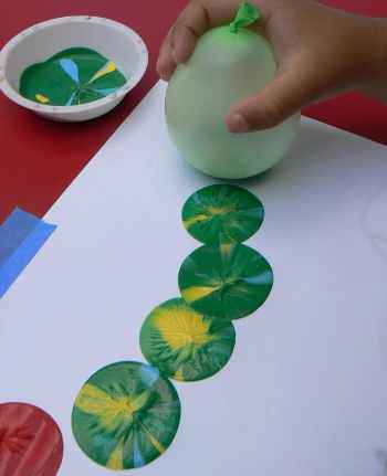 Estupenda y divertida técnica para trabajar en las clases de educación plástica. La estampación con globos es una sencilla y vistosa técnica que puede usarse como única técnica plástica para realizar una composición artística o combinándola con otras para realizar figuras circulares con efectos de colores.