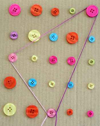 Si son más mayores podemos complicar la actividad pidiendo que la hagan sobre botones de un color concreto. Pasarán un divertido rato y aprenderán con facilidad como hacer un triángulo, un cuadrado…
