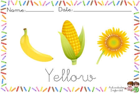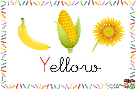 El yellow es el color elegido en esta entrega para trabajar nuestro nuevo proyecto para aprender los colores en inglés. En cada entrega que os dejemos encontraréis los carteles para el aula, y las fichas para trabajarlos con los peques. En este post trabajaremos el color amarillo.