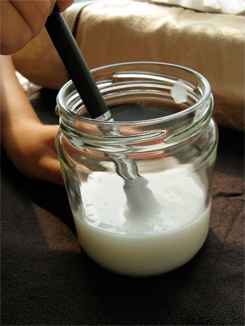 Se ponen pepitas de manzana,de pera,o de cualquier otra fruta de verano,en un recipiente de cristal con un poquito de agua,(que cubran las pepitas),al «baño maría»,dentro de otro recipiente metálico con agua al fuego lento,se deja cocer durante unos minutos,removiendolo con una cucharilla de madera,verá cómo el agua se va haciendo mas espesa.