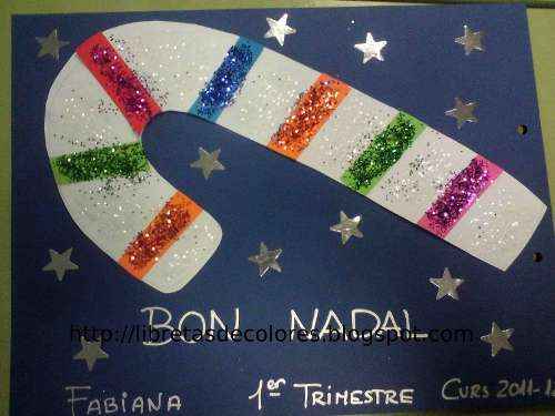 En esta ocasión os traemos una portada para el álbum de Navidad muy dulce. Es una tapa basada en los caramelos típicos de Navidad con forma de bastón. Es muy sencilla de realizar y muy vistosa (la imagen no le hace justicia). Os explicamos como la hemos hecho. A los peques les ha encantado.