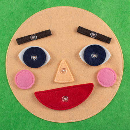 Cómo trabajar las expresiones faciales con un juego de fieltro. Os presento este sencillísimo juego realizado con fieltro que representa una cara. Con él podemos trabajar las expresiones faciales según las emociones que sintamos.