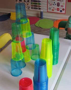 Os dejamos esta simpática actividad que consiste en levantar una «torre» con vasos de plástico de colores diversos. Para este sencillo ejercicio se requiere un ejercicio de coordinación y precisión de movimientos, con lo que estaremos trabando la coordinación óculo-manual y la destreza y precisión de movimientos