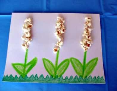 Una actividad muy sencilla y original donde combinamos el dibujo plástico con unas palomitas de maiz! Los peques habrán dibujado plantas y flores con diferentes materiales, colores y formas, pero… lo han probado ya con palomitas?
